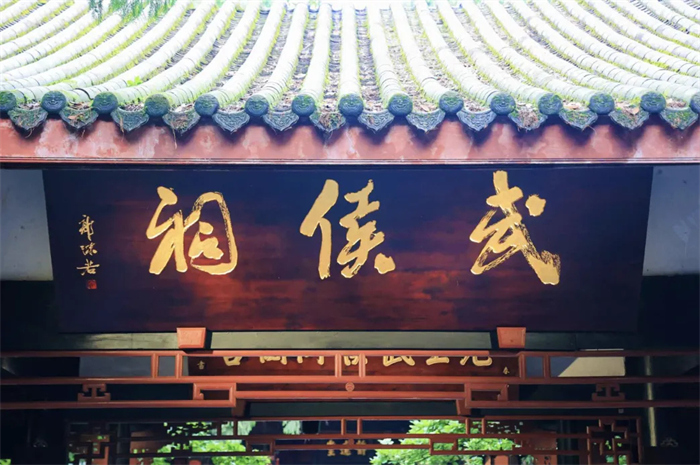 武侯祠内,红墙竹影摇曳