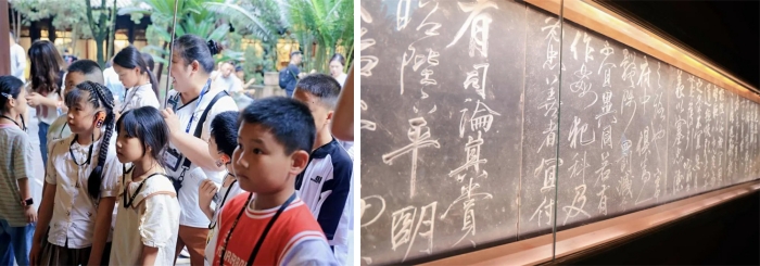 导游指点碑刻间