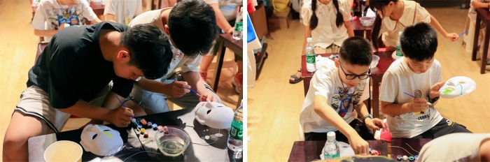 孩子们高高举起亲手浇铸的面具模型