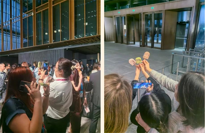 中国大饭店特别为亚投行年会研发的文创冰棍,以其独特的造型和清爽的口感,在宴会现场掀起一阵打卡热潮。这款融合中国传统文化元素的创意冰品,不仅成为消暑佳品,更化身为中外嘉宾互动交流的媒介。与会贵宾们兴致盎然地排起长队,将晶莹剔透的冰棍举向蓝天拍照留念。