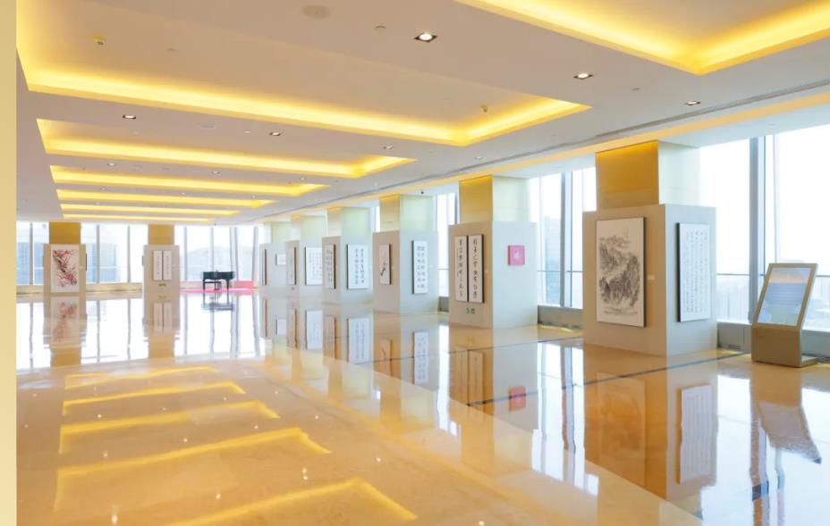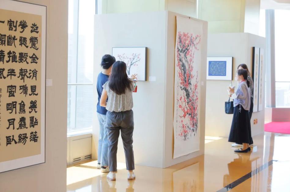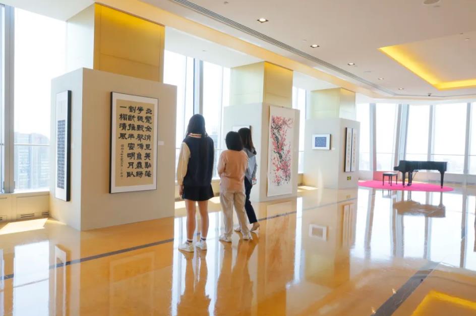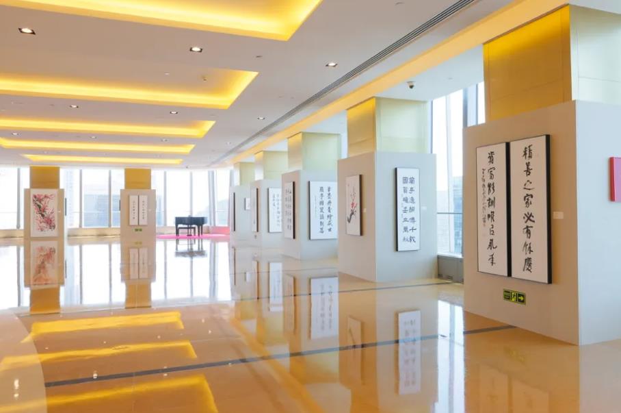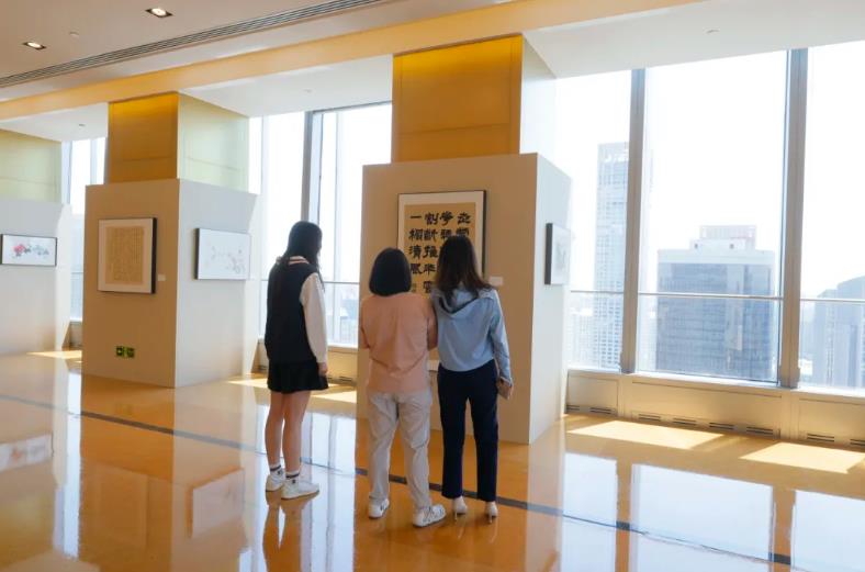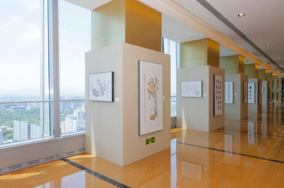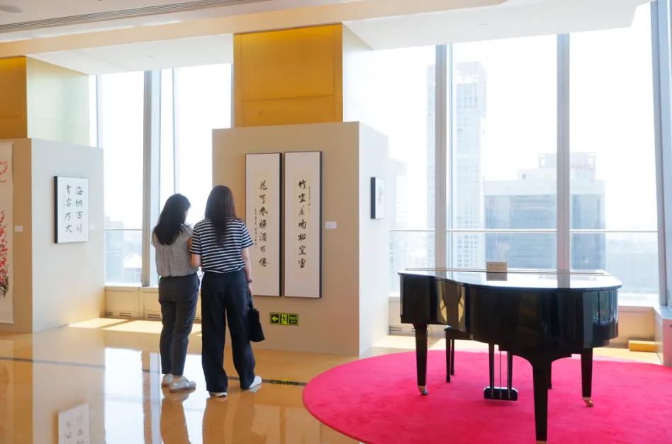 近日,《兰亭再续,国贸更强--2025 年国贸写字楼书画展》在国贸大厦A座32层空中大堂开展。