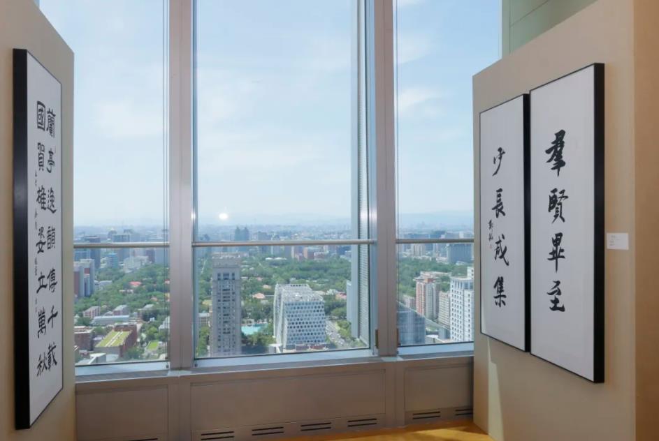 群贤毕至,佳作云集。观展可鸟瞰京城,古都辉煌,亦可极目远眺,西山悠然,可饱览笔墨酣畅,古风盎然。虽无丝竹管弦之盛,一照一赏,亦足以畅叙幽情。择日也,天朗气清,惠风和畅。仰观宇宙之大,俯察京城之盛,所以游目骋怀,信可称兰亭再续,国贸更强。
