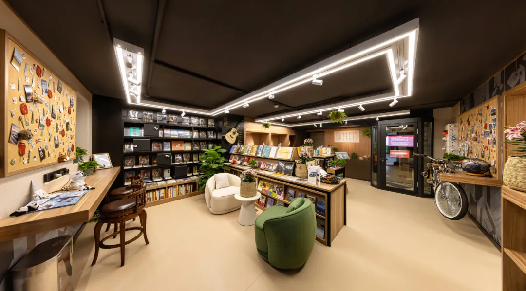 位于国贸世纪艺术交流站的图书小馆,书架上排列着琳琅满目的图书,绿植与鲜花点缀其间,还有趣味十足的展示墙……整体环境幽雅舒适,每一处都充满了巧思。捧一本书坐下,充盈自己,让身心在此刻得到彻底的休憩与滋养。