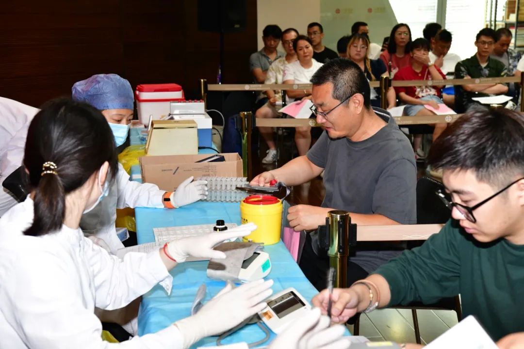 献血活动现场,从填表登记、验血筛查到采血、发放献血证,每一个环节都井然有序、高效顺畅,展现了国贸员工高度的组织纪律性和团队协作精神。