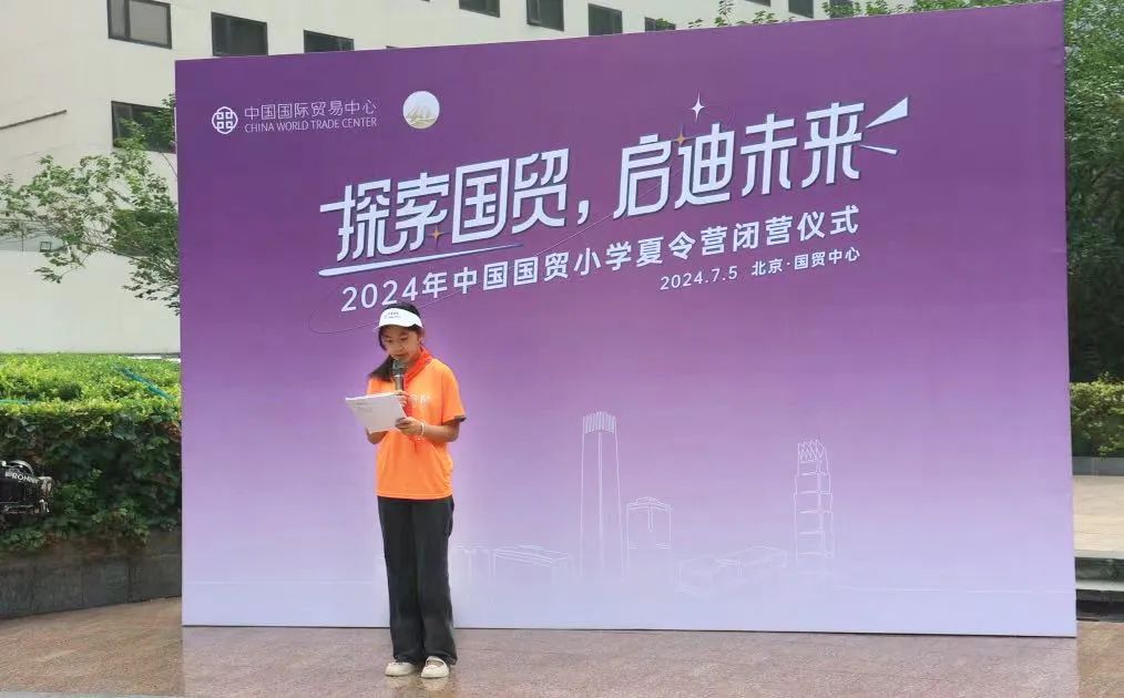 7月5日,由国贸中心资助的中国国贸小学2024年研学夏令营闭营仪式在国贸中心举行,中国国际贸易中心执行董事、国贸股份公司董事长黄国祥,国贸股份公司总经理支陆逊,国贸有限公司副总经理郎宽,国贸小学名誉校长、工程部总监廖顺雨等领导以及国贸中心志愿者代表出席了闭营仪式。