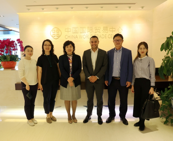5月14日下午,国贸中心有限公司钱晓瑾副总经理接待了世贸中心协会理事会执行委员会主席爱德华·埃里森-怀特、副总裁王迅一行来访。