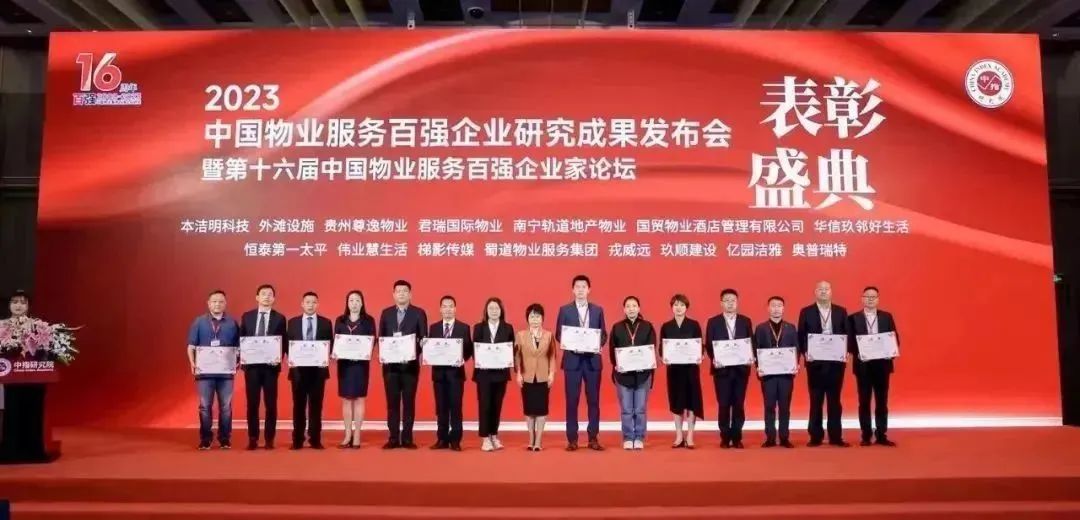 2023年4月26日,由北京中指信息技术研究院主办,北京中指信息技术研究院中国房地产TOP10研究组、中国物业服务指数系统承办的“2023中国物业服务百强企业研究成果发布会暨第十六届中国物业服务百强企业家论坛”于北京隆重举行。