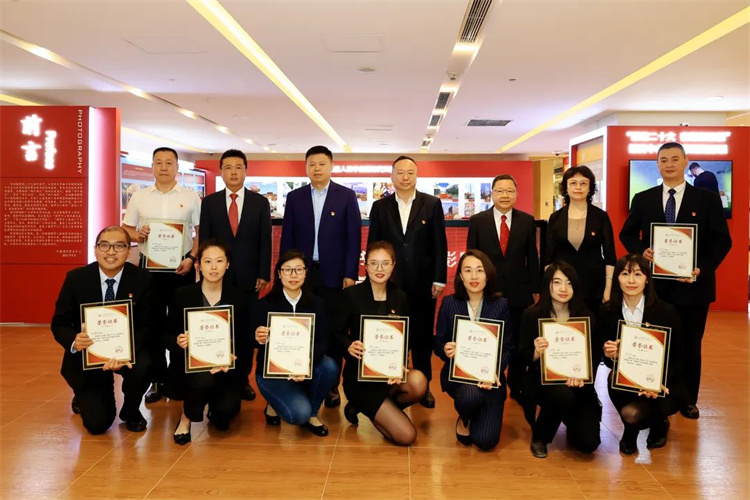 揭幕仪式前,国贸中心工会主席徐娟同志首先揭晓了“喜迎二十大 永远跟党走 致敬奋斗者”主题征文获奖名单。国贸中心股份公司副董事长吴相仁先生、有限公司总经理梁师麟先生、股份公司总经理支陆逊先生、副总经理钟荣明先生和工会主席徐娟女士为主题征文获奖员工代表颁发了荣誉证书,并合影留念。