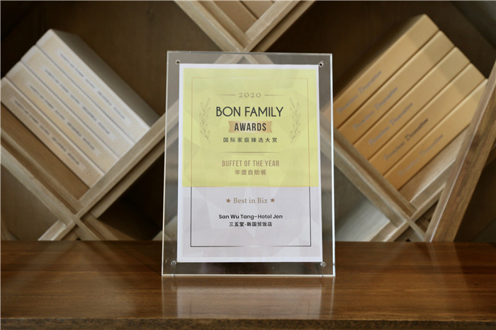 作为创造2020年度最佳家庭打卡指南的Bon App更是为新国贸饭店带来3项大奖。2020 Bon Family 国际家庭臻选大赏综合评委大咖评分以及用户投票,评选出上海、北京、南京的家庭打卡圣地。新国贸饭店作为北京新生代酒店的代表,分别斩获了年度酒店奖、三五堂年度自助餐奖和炼·工场年度健身中心奖,再次为酒店添喜。