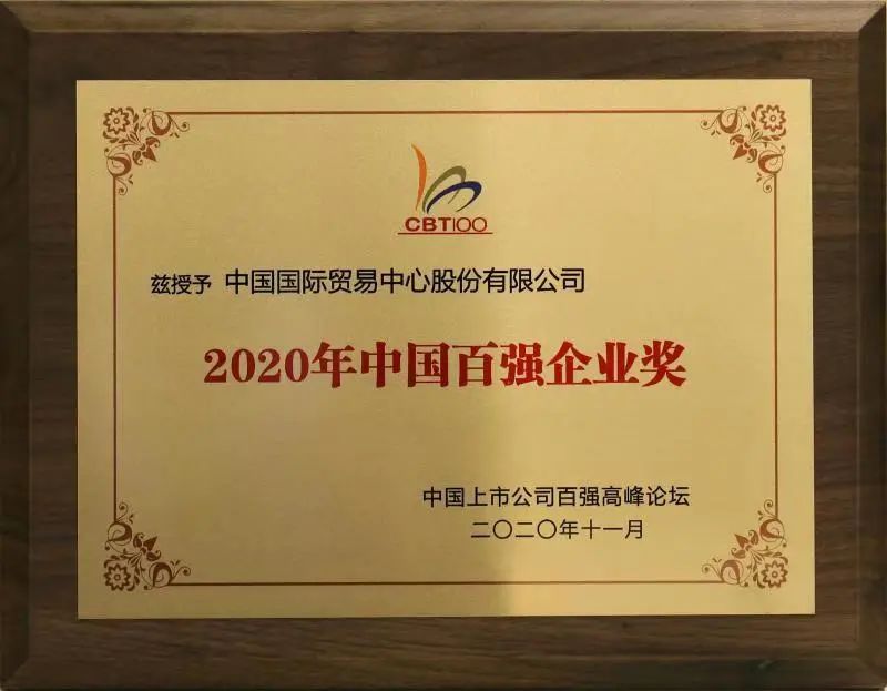 中国国际贸易中心股份有限公司荣获“2020年中国百强企业奖”