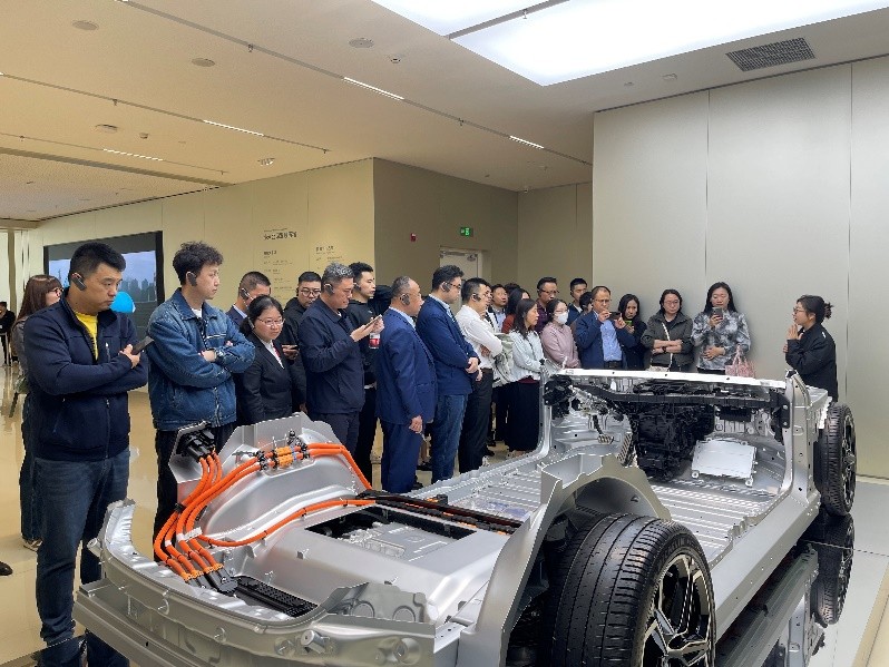 进入综合楼大厅,大家就被一台悬挂在莫比乌斯环造型的小米SU7吸引,纷纷在此驻足留影。在讲解员的引导下,步入科技展厅,一一了解小米汽车的历史发展、平台架构、电机电池、压铸、车身骨架、辅助驾驶等技术,感受小米汽车的设计理念和技术成就。