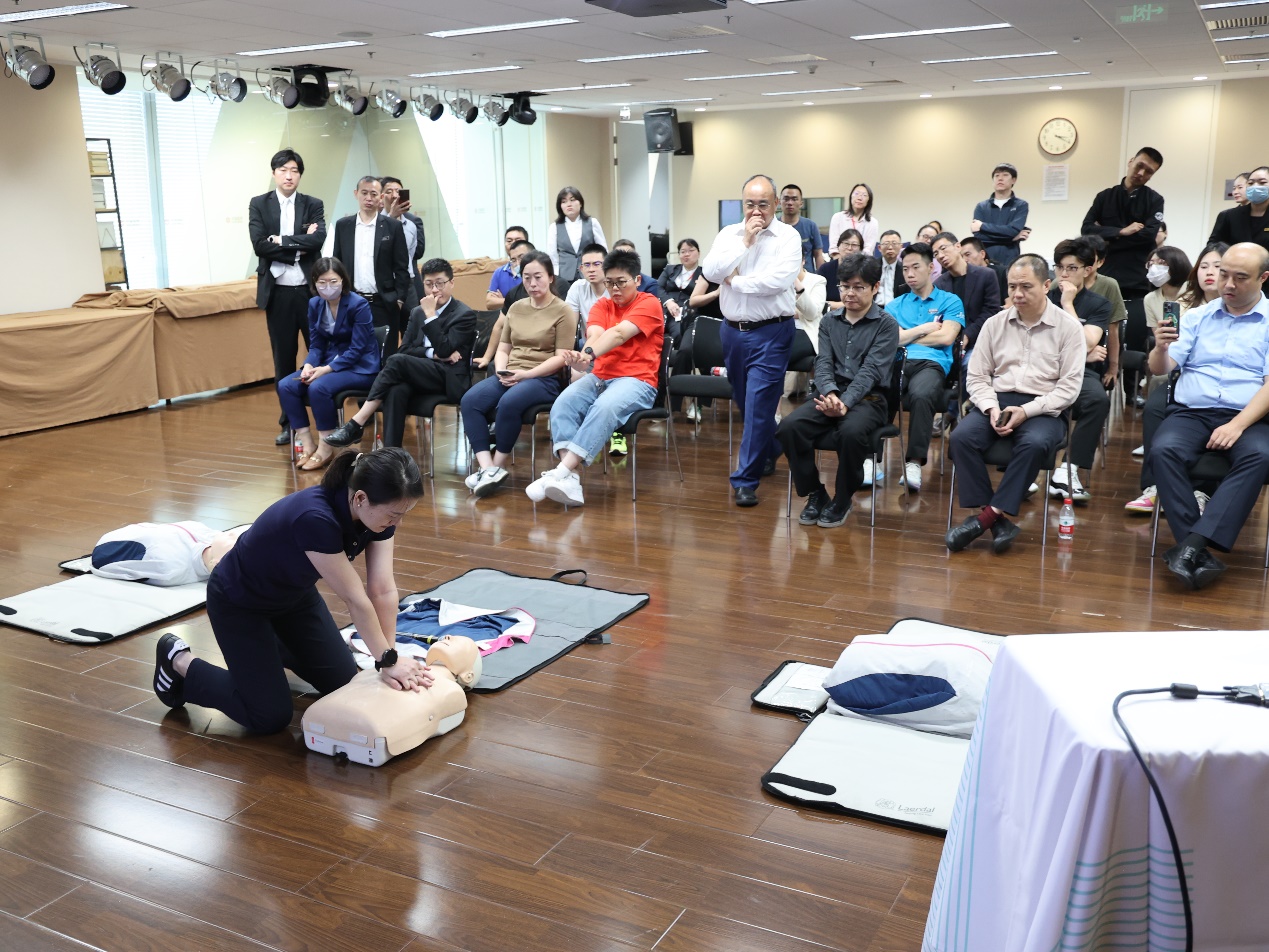 为了提高员工在紧急情况下的急救意识与救助能力,国贸中心工会会同综合管理部、人事行政管理部于2024年8月16日邀请维世达诊所专业人士对员工开展了CPR+AED急救技能培训。来自国贸中心各部门的50多名员工参加了培训。