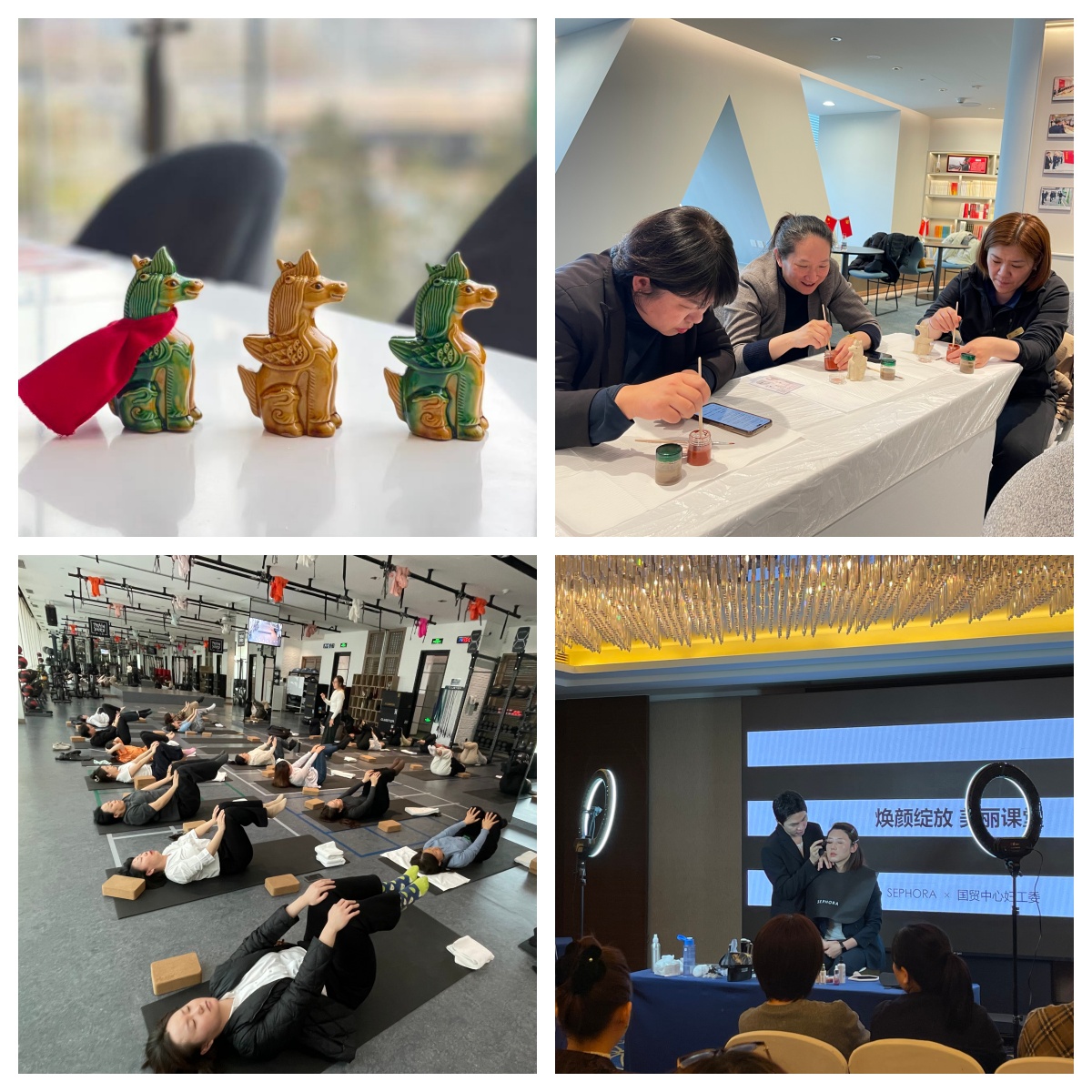 除职场赋能沙龙外,本次系列活动还设置了琉璃手作、美妆讲座与冥想体验课程。琉璃是中国古建的重要装饰材料之一,天马在中国传统文化中象征着吉祥、勇气与美好愿景,参与者在老师的指导下完成琉璃天马作品,并在活动过程中享受片刻的放松与宁静。美妆讲座围绕通勤妆等实用场景进行讲解与示范,帮助女性员工提升形象管理与自我表达能力;冥想课程则通过呼吸调节与身心放松,引导员工缓解压力、释放情绪,在繁忙工作节奏中获得身心滋养。
