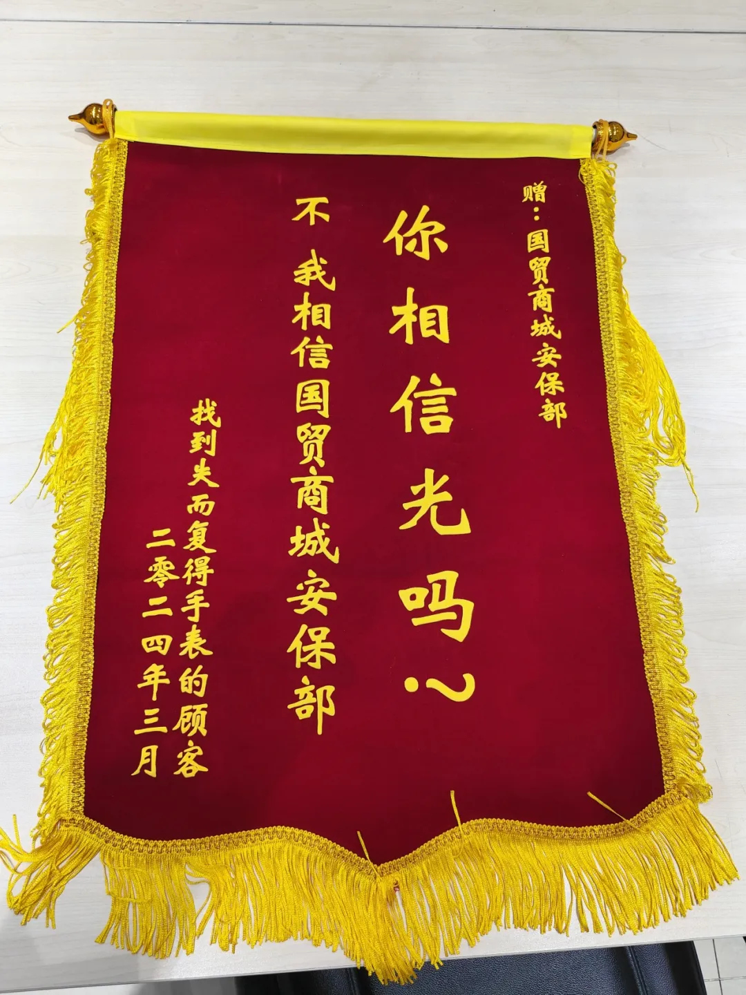 像这样的暖心故事,在保安部每年都会发生很多次。正是这些无微不至的服务和细心的工作态度,让保安部每年收到多面锦旗。有些幽默的客人,甚至还在锦旗上称呼他们为"朝阳赵子龙"、"国贸关二爷",以此称赞他们的付出。
