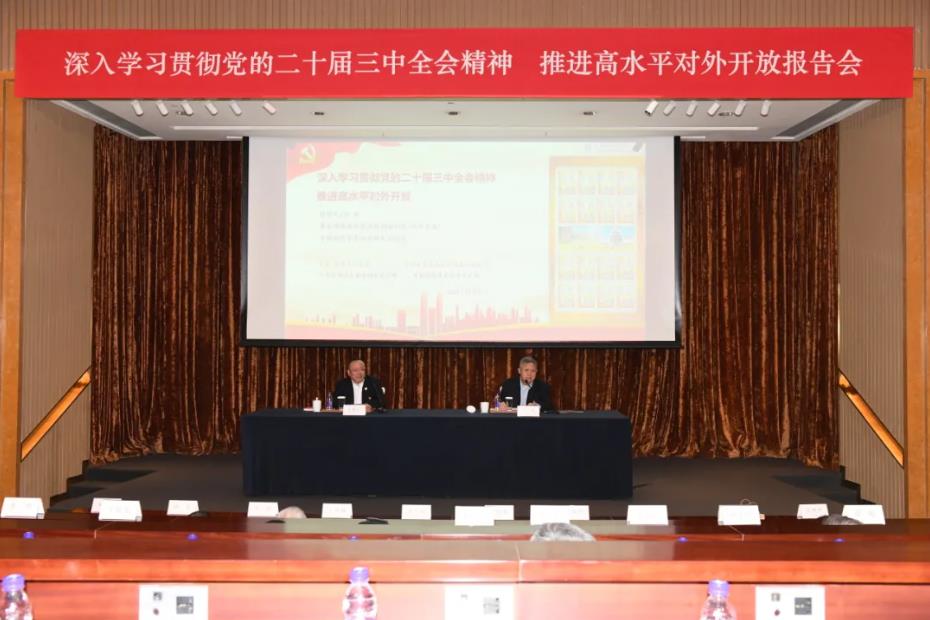 报告会邀请商务部原国际贸易谈判副代表(副部长级)、中国世界贸易组织研究会会长崇泉围绕“深入学习贯彻党的二十届三中全会精神,推进高水平对外开放”作辅导报告。崇泉会长通过详实数据解读了自加入世界贸易组织(WTO)以来中国对外贸易超常规的增长和出口对经济的巨大拉动作用,以及中国经济的快速发展和对世界经济作出的突出贡献。崇泉会长指出,面对复杂多变的国际政治经济形势,我们要深入学习贯彻习近平新时代中国特色社会主义思想和党的二十届三中全会精神,坚定站在历史正确一边,坚持经济全球化大方向,坚持对外开放基本国策,坚持改革开放不动摇,推进高水平对外开放,推动建设开放型世界经济,为以中国式现代化全面推进中华民族伟大复兴贡献智慧和力量。