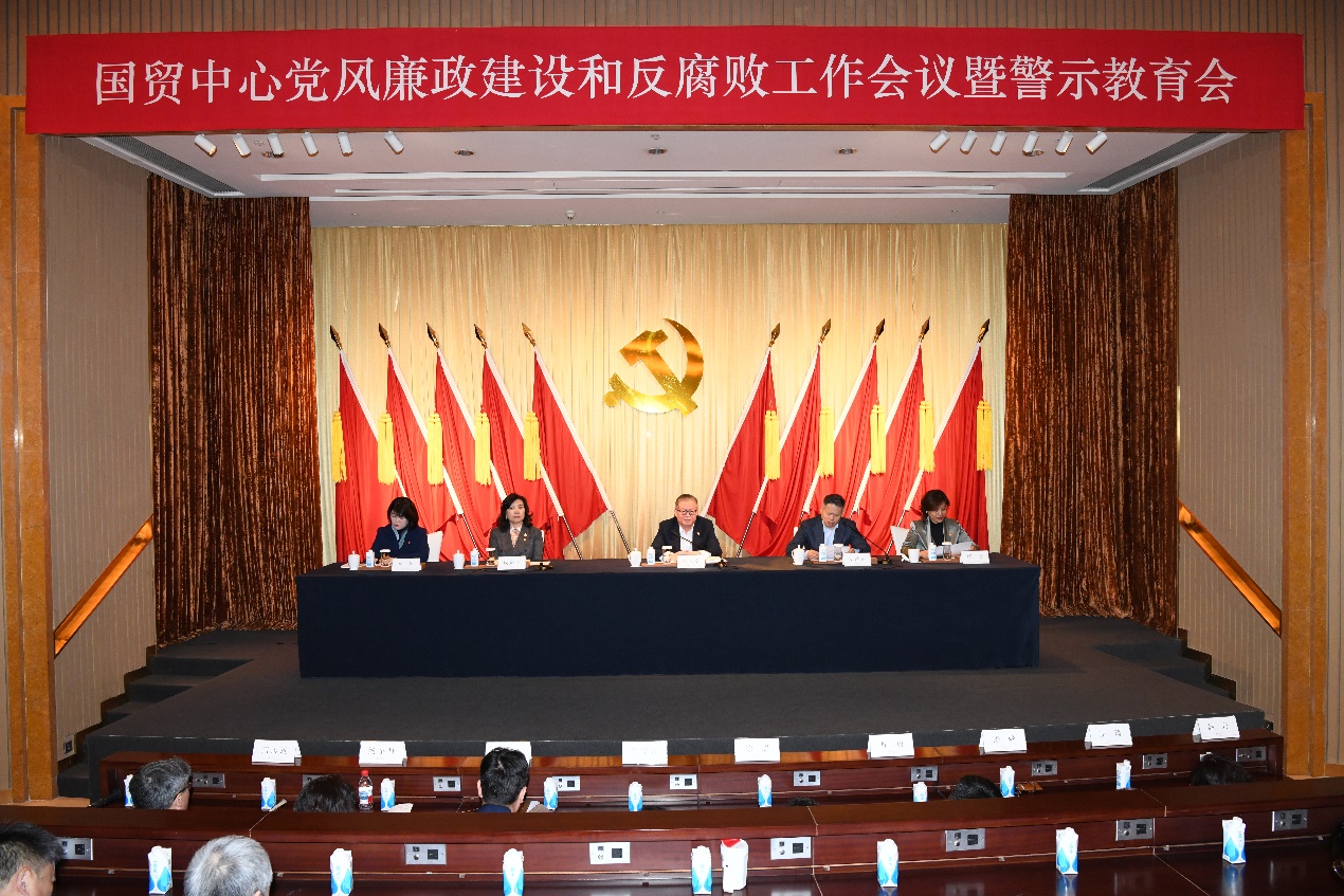 2026年3月6日,国贸中心召开党风廉政建设和反腐败工作会议暨警示教育会。中心党委书记余元堂讲话,党委副书记支陆逊主持会议。中心党委委员、纪委委员,各总支、支部委员,重点部门党员代表,团员青年代表参加会议。